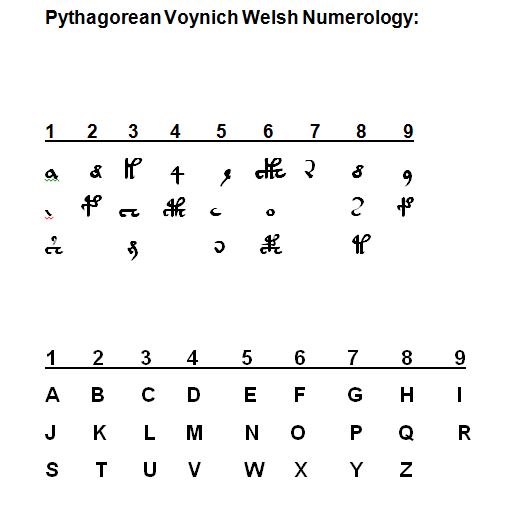 b) I chose these glyph's to be identical to numbers in the Pythagorean table along with using the welsh language. The H=8 and so on e=5!